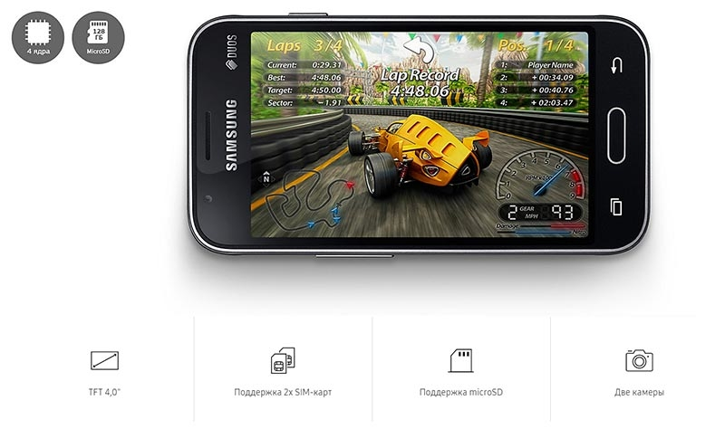 Характеристики Samsung Galaxy J1 mini SM-J105 Белый